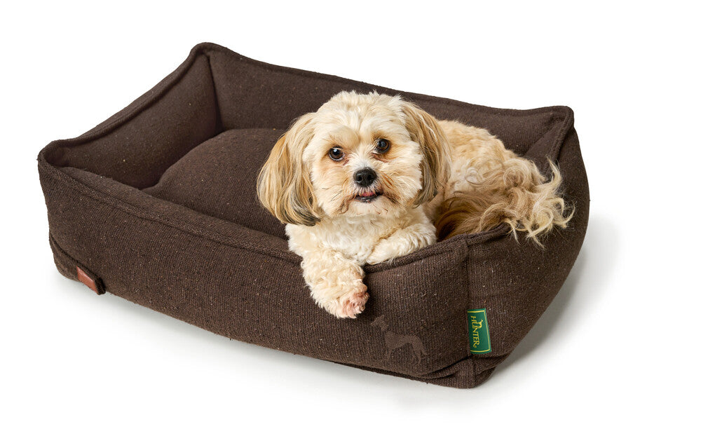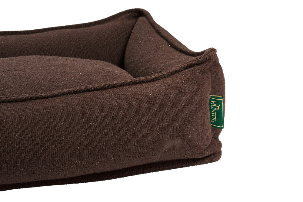 Pelíšek pro psy BELLUNO je nejen útulný a stylový, ale také mimořádně udržitelný. Potah z robustní strukturované tkaniny i bohatá výplň pro vysoký komfort při ležení jsou vyrobeny převážně z recyklovaných materiálů. Klasický vzhled pelíšku zdobí decentní nášivka z umělé kůže s vyraženým logem HUNTER.