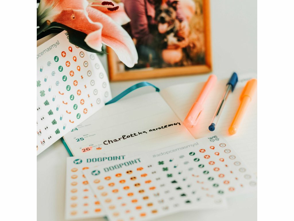 Celý výtěžek z diáře je určen útulku Dogpoint. Nákupem tedy uděláte radost hned dvakrát - sobě nebo tomu, pro koho diář zakoupíte a pejskům, o které Dogpoint pečuje.