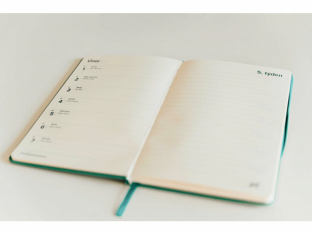 - týdenní rozložení poskytuje dostatek prostoru na záznamy a poznámky