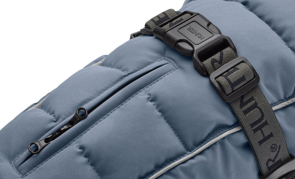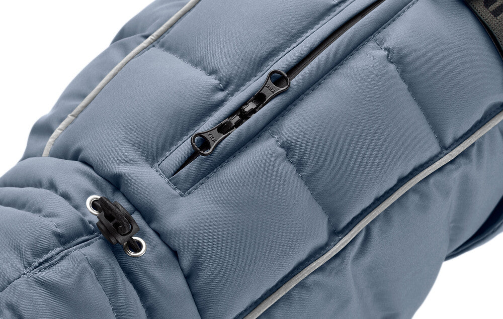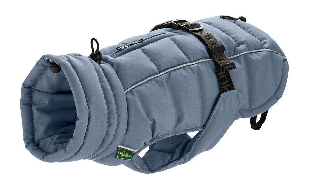Bohatá výplň uvnitř prošívaného kabátu poskytuje extra teplo zejména při nízkých teplotách. Vysoký, na šířku nastavitelný límec i zakryté břicho poskytují dostatečnou ochranu před větrem a povětrnostními vlivy. Reflexní prvky jsou dobře viditelné i ve tmě.