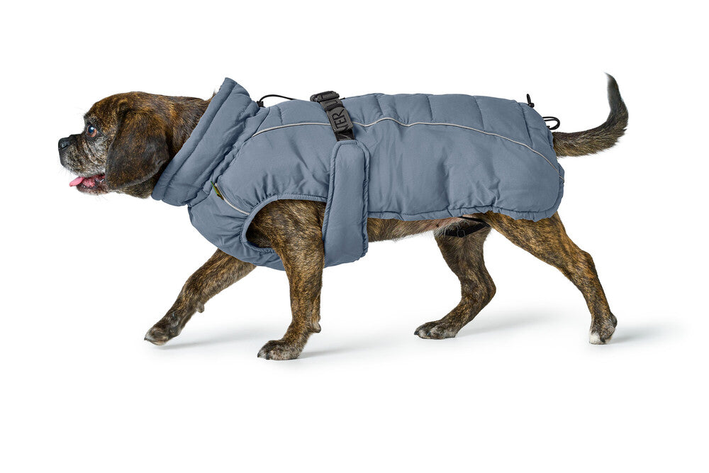Střih s individuálně nastavitelnými prvky, jako je elastický břišní pásek, nastavení šířky v oblasti kyčlí a voděodolný dvoucestný zip. Díky nim se kabátek PAXSON dokonale přizpůsobí zvláštnímu tvaru těla malých psů se širokým hrudníkem, kterým zajistí volnost pohybu. Kabátek PAXSON lze jednoduše vyprat v pračce při 30 °C.