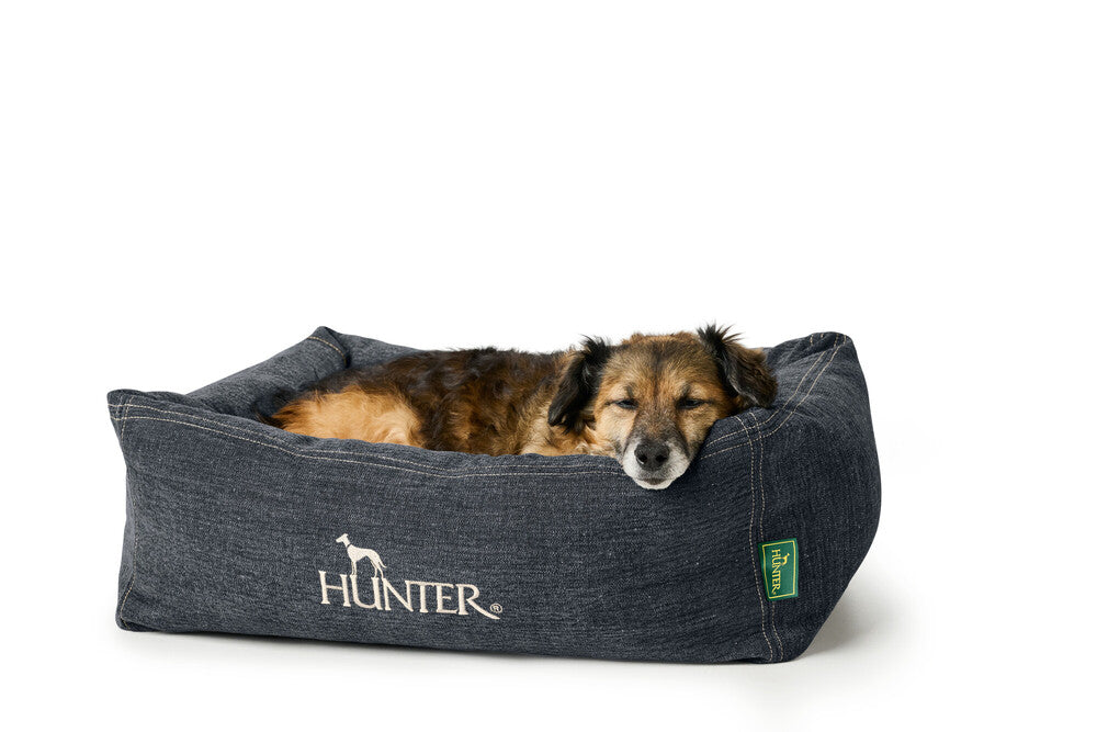 Moderní sepraný denimový potah dodává pohovce ležérní vzhled a snadno zapadne do každého interiéru. Protiskluzová spodní část zajišťuje stabilitu i při pohybu psa.